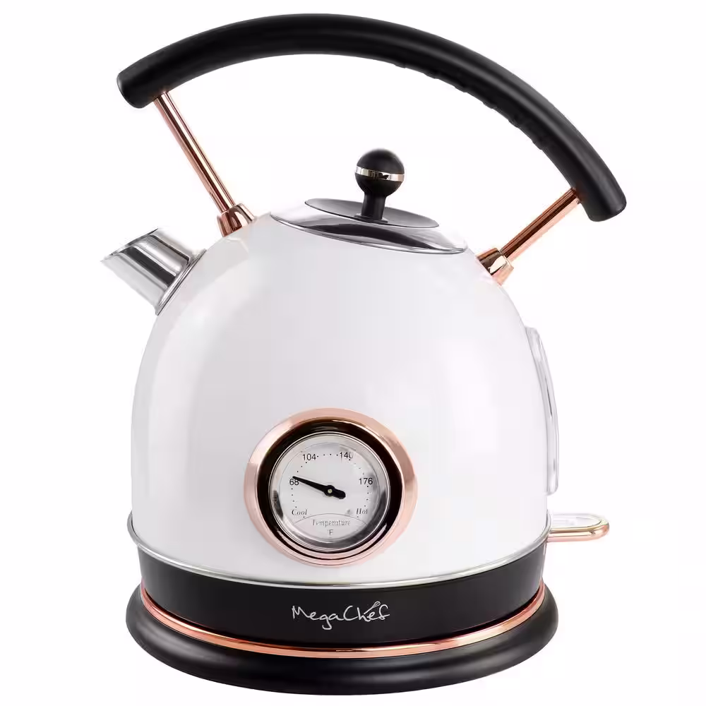 MegaChef 1.8 l 7.6-Cups in White Half Circle Electric Tea Kettle With Thermostat