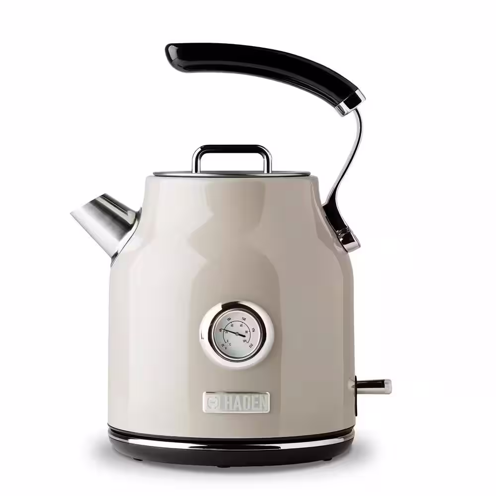 HADEN Cotswold 1.7 l 7-Cup Beige Stainless Steel Electric Kettle with Auto Shut-Off and Boil-Dry Protection