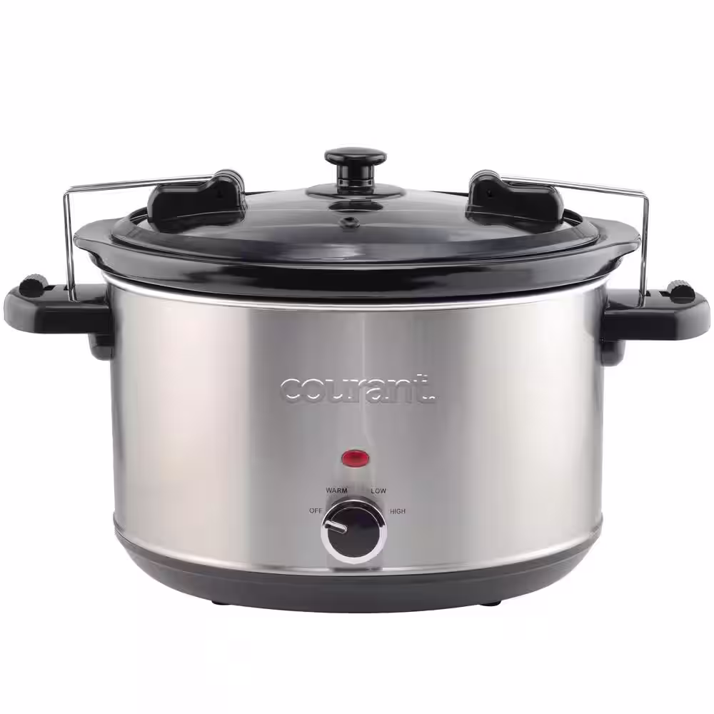 Courant 6-qt. Slow Cooker with Locking Lid, Warm Settings, Stainproof Stoneware Pots, Stainless Steel