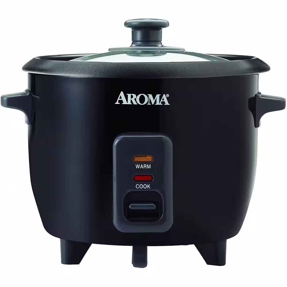 AROMA 6-Cup Black Rice Cooker with Removable Steam Tray