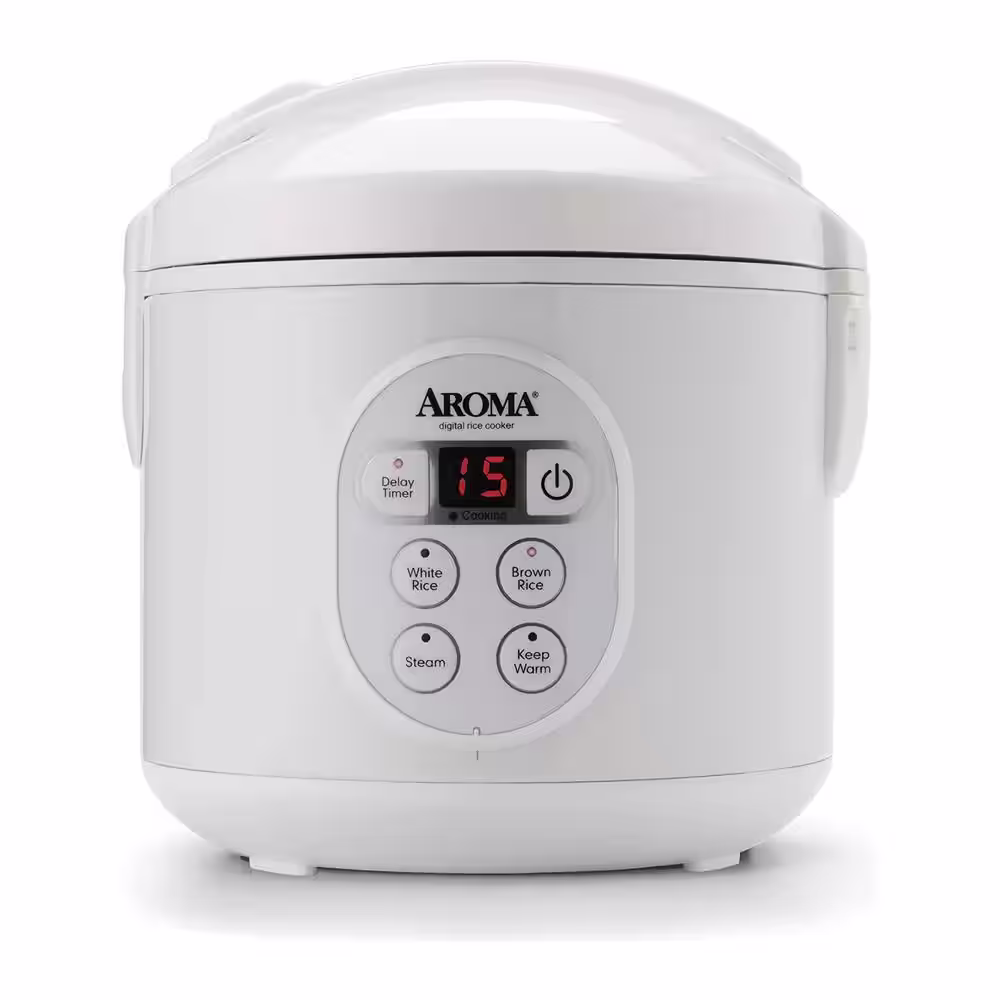 None 8-Cup White Digital Rice Cooker in Black Control Panel