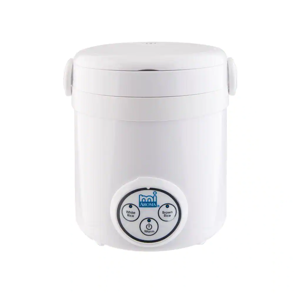 AROMA 3-Cup White Mini Rice Cooker with Non-Stick Cooking Pot