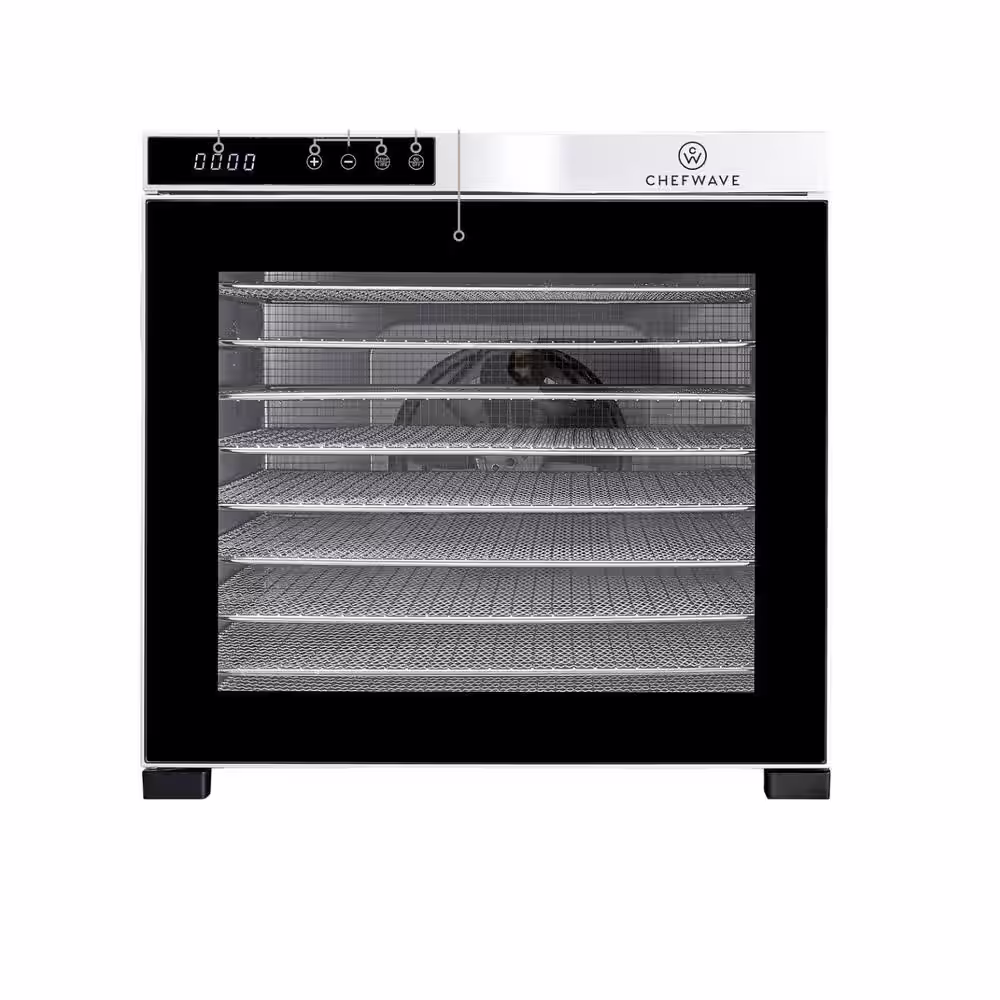 CHEFWAVE 10 Tray Food Dehydrator with Stainless Steel Racks, Temp + Time Control