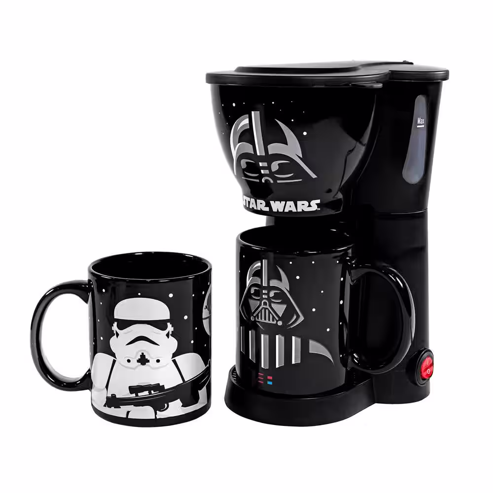 Uncanny Brands Star Wars Single Cup Black Drip Coffee Maker with 2-Mugs Darth Vader Stormtrooper Mugs Included