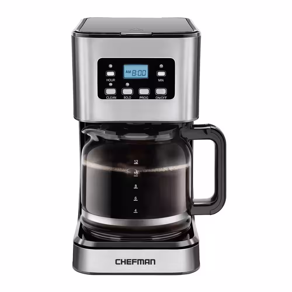 Chefman 12- Cup Programmable Coffee Maker Electric Brewer Digital Display w/Auto-Brew Reusable Filter Stainless Steel