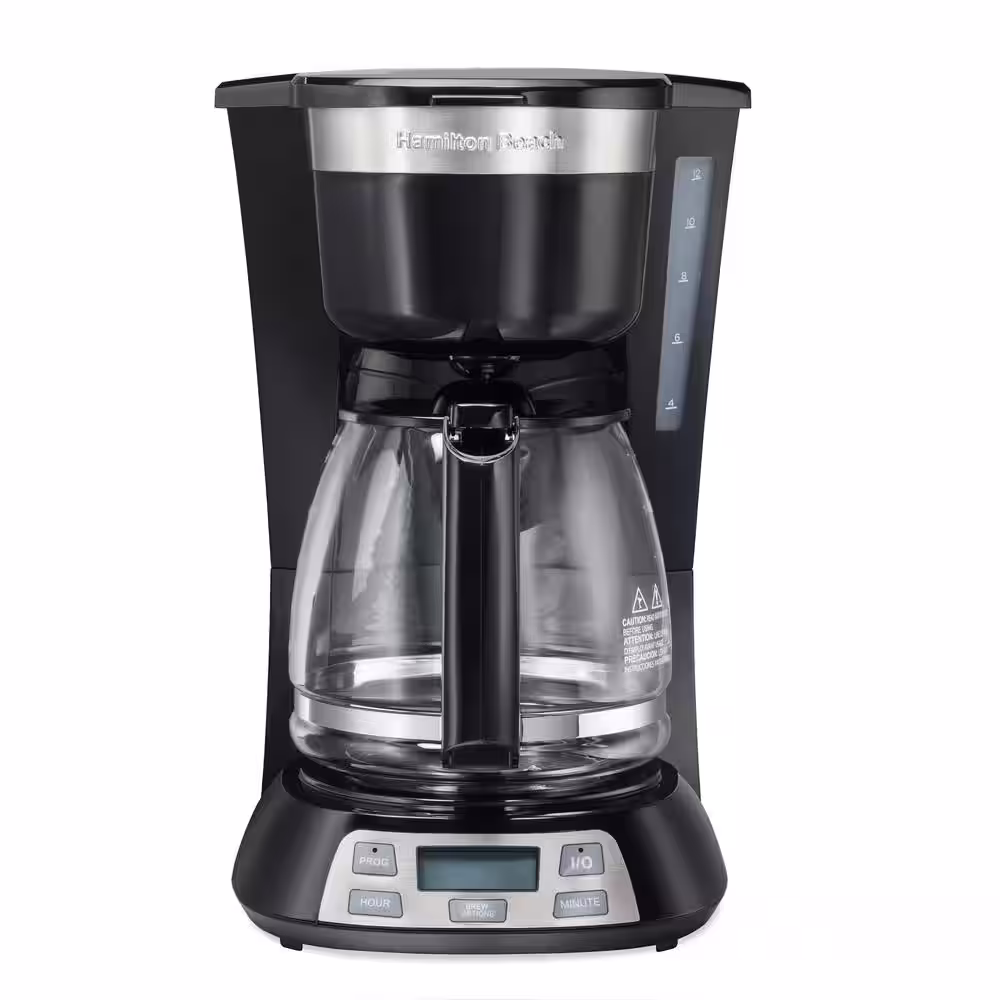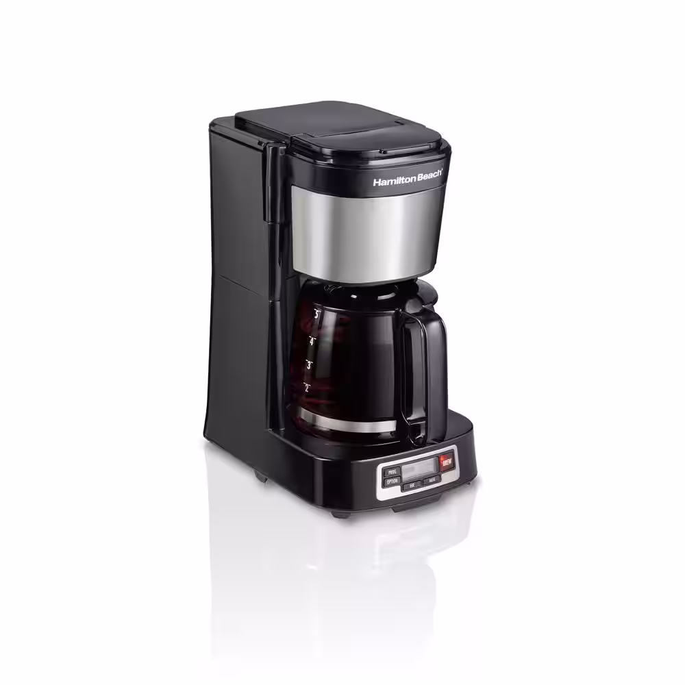 Hamilton Beach 5-Cup Black Compact Coffee Maker with Programmable Clock & Glass Carafe