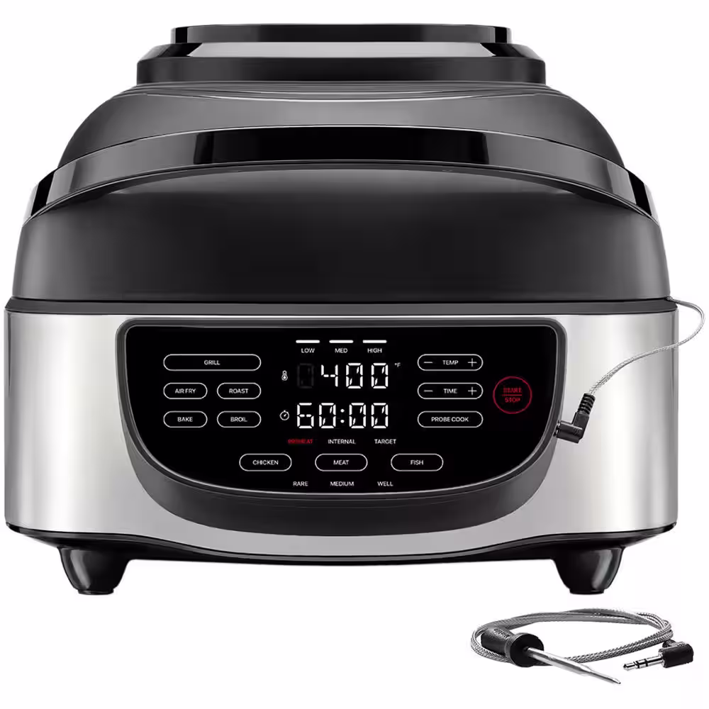 Chefman Air Fryer, 7.4 Qt., Removable Integrated Probe Thermometer, Electric Indoor Air Fryer + Grill, Stainless Steel/Black