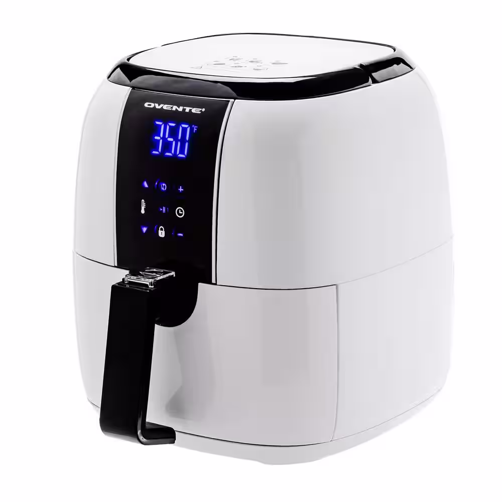 OVENTE 3.2 Qt. White Air Fryer Grill Pan and Non-Stick Frying Basket Auto Shut-Off 6 Cooking Presets Touch Sensor