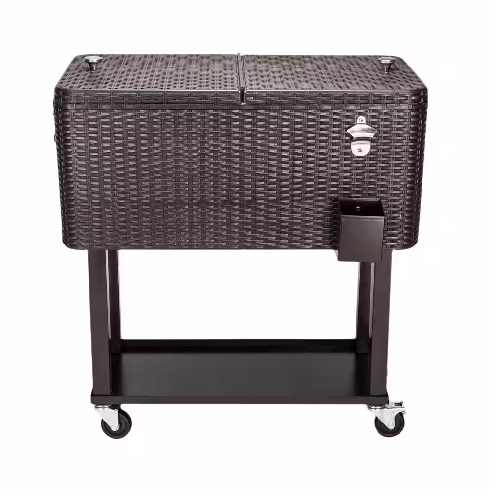 Winado 80 Qt. Iron Rattan Beverage Wheeled Cooler with Shelf