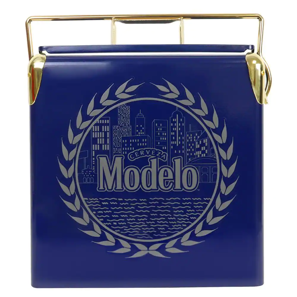 None Modelo Retro Ice Chest Beverage Cooler with Bottle Opener 13L (14 qt.) 18 Can, Blue and Gold