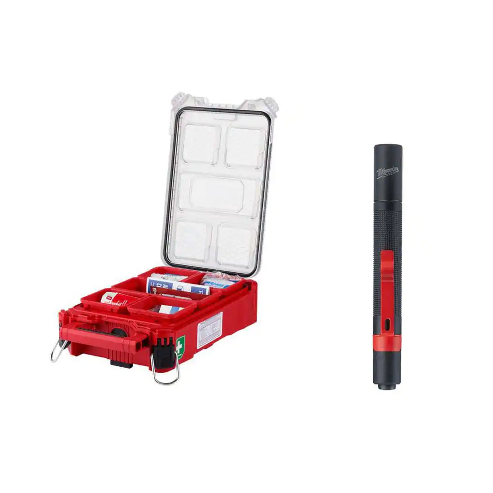 Milwaukee Class A Type 3 Compact Packout First Aid Kit (79-Piece) with 100 Lumens Aluminum Pen Light with Clip