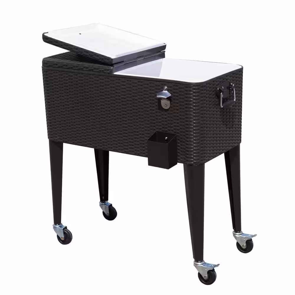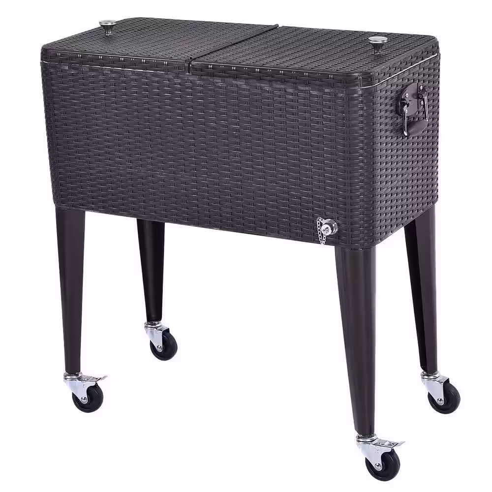 None 108 Qt. Outdoor Rattan Patio Rolling Cooler Cart Trolley in Black/Brown