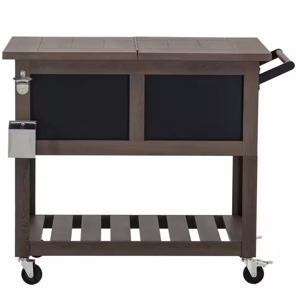 Sunjoy 80- Quart Brown Rolling Ice Chest Cooler Cart with Chalkboard, Storage Shelf, Bottle Opener, and Wheels
