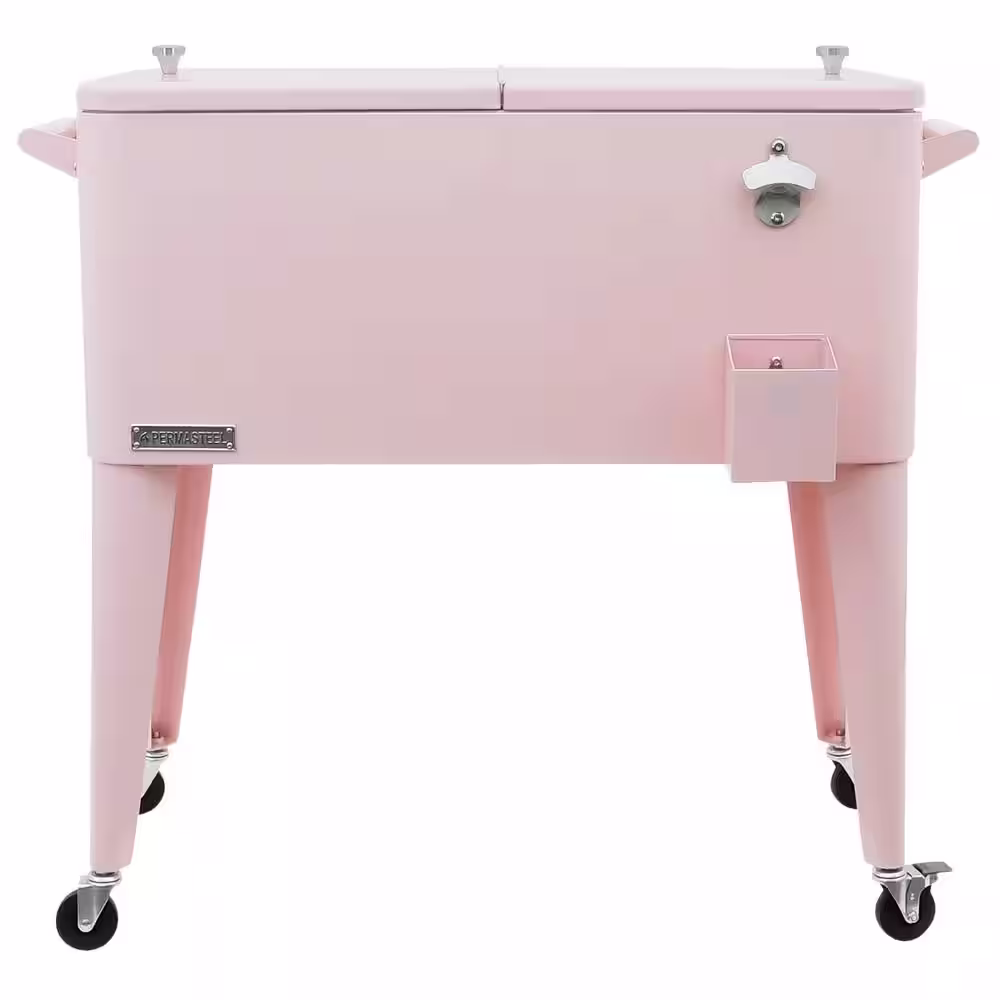 PERMASTEEL 80 qt. Pink Classic Outdoor Rolling Patio Cooler with Wheels and Handles