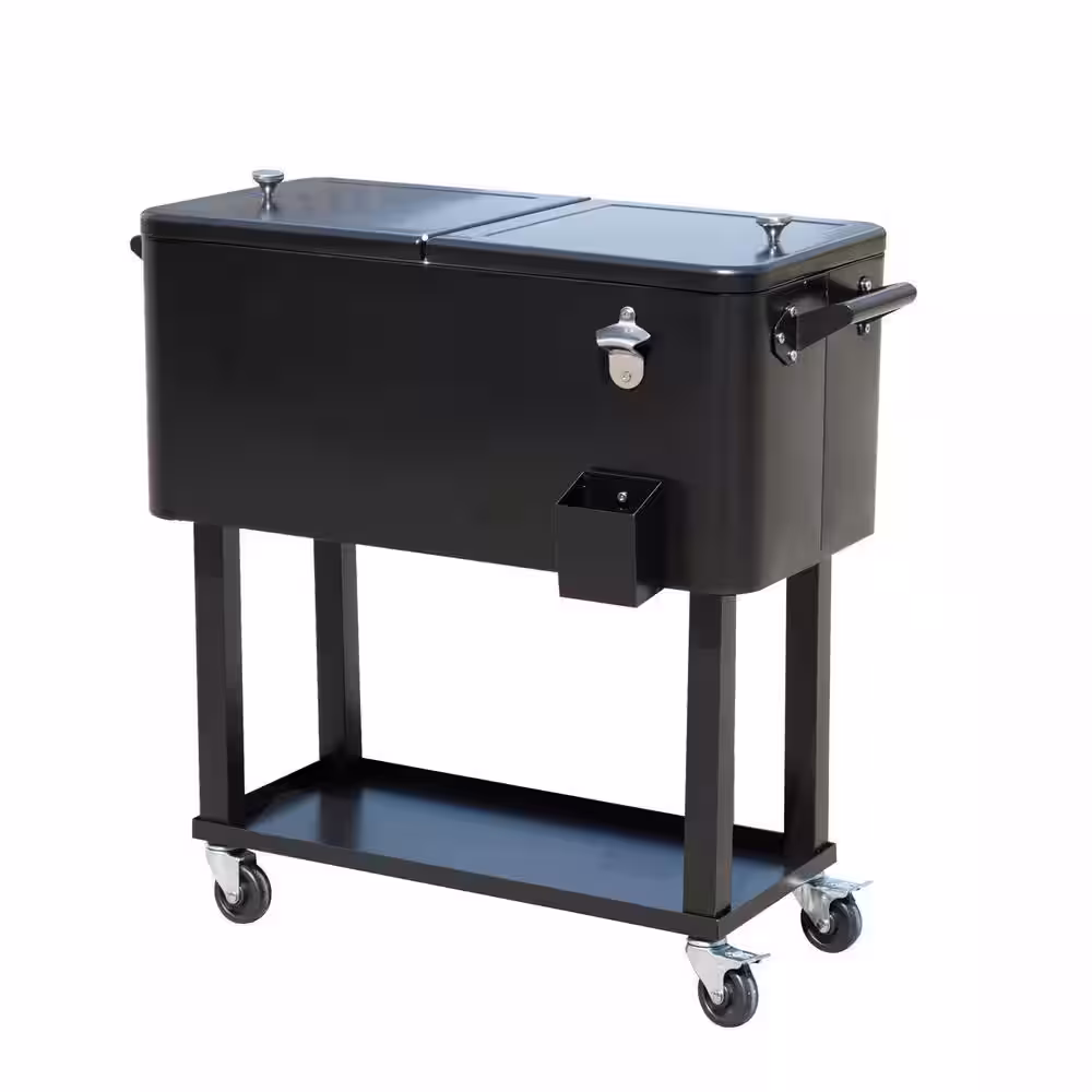 Permasteel 80 qt. Black Outdoor Patio Cooler with Removable Basin