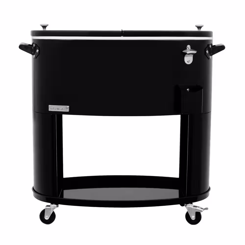 PERMASTEEL 80QT Sporty Oval Shape Rolling Patio Cooler in Black