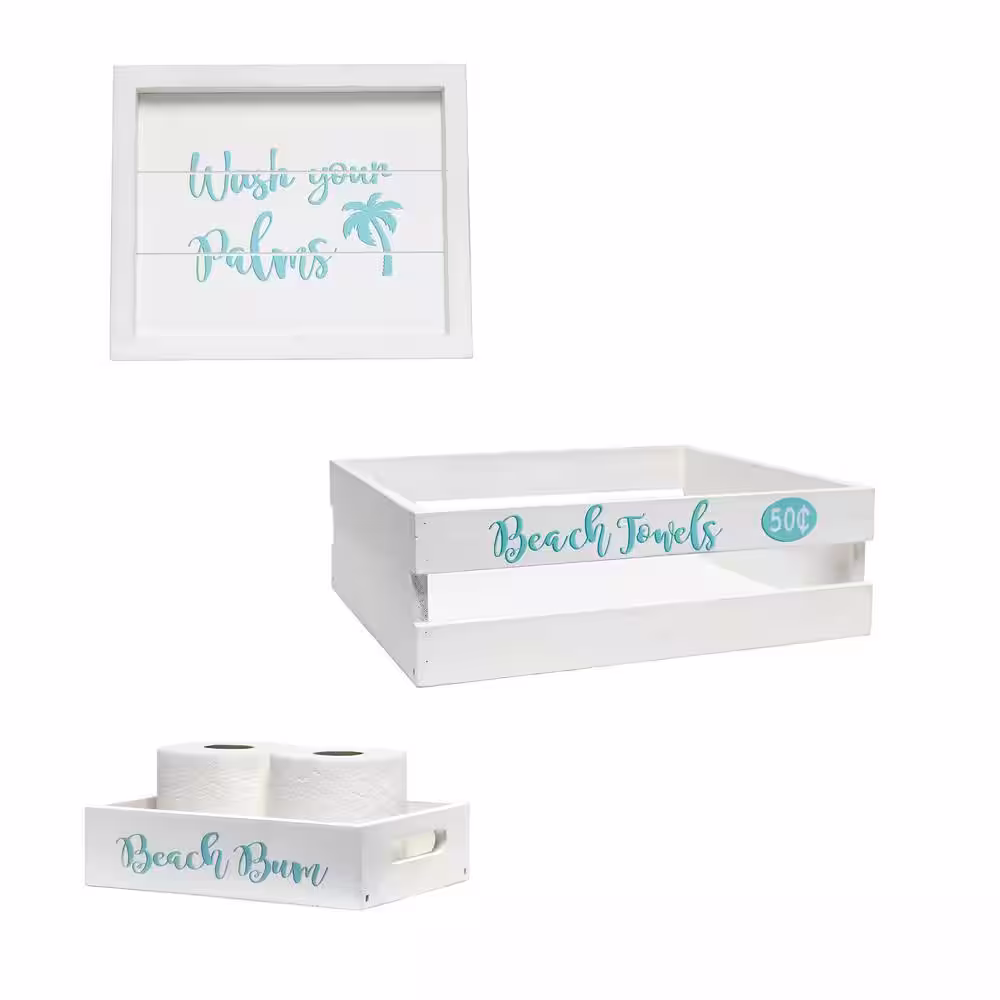 Elegant Designs 3-Piece Decorative Wood Bathroom Set, Large, Coastal/Beach (1-Towel Holder, 1-Frame, 1-Toilet Paper Holder)