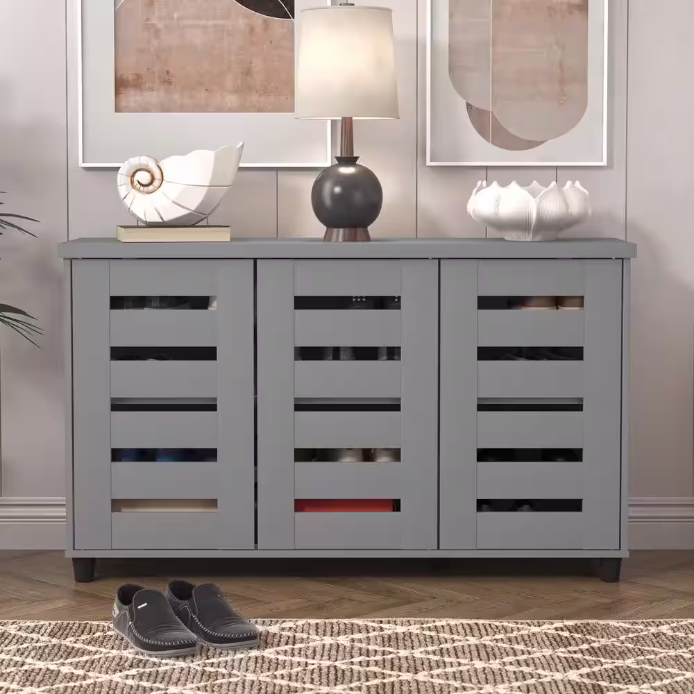 GALANO 27.4 in. H x 45.6 in. W Cool Grey Wood Shoe Storage Cabinet with Ultrafast Assembly