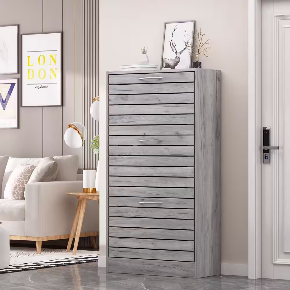 None Grey Wooden Shoes Storage Cabinet, with 3 Drawers for Entryway Hallway, 42.3 in. H x 22.4 in. W