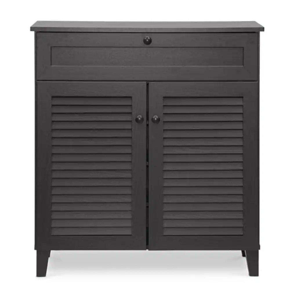 Baxton Studio 27.5 in. H x 29.63 in. W Brown Wood Shoe Storage Cabinet