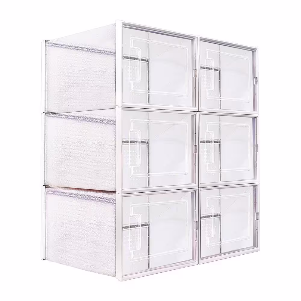 None 6-Pair Stackable Clear Plastic Foldable Shoe Boxes in White