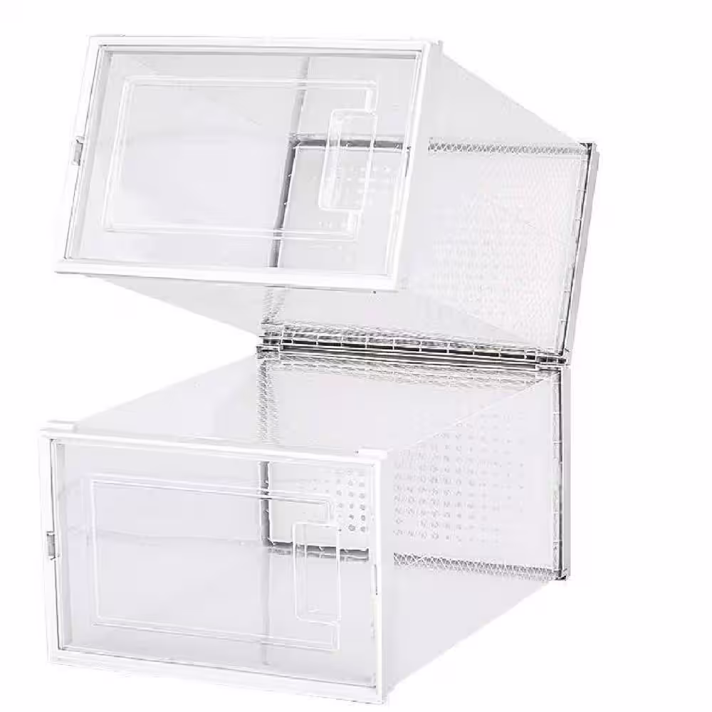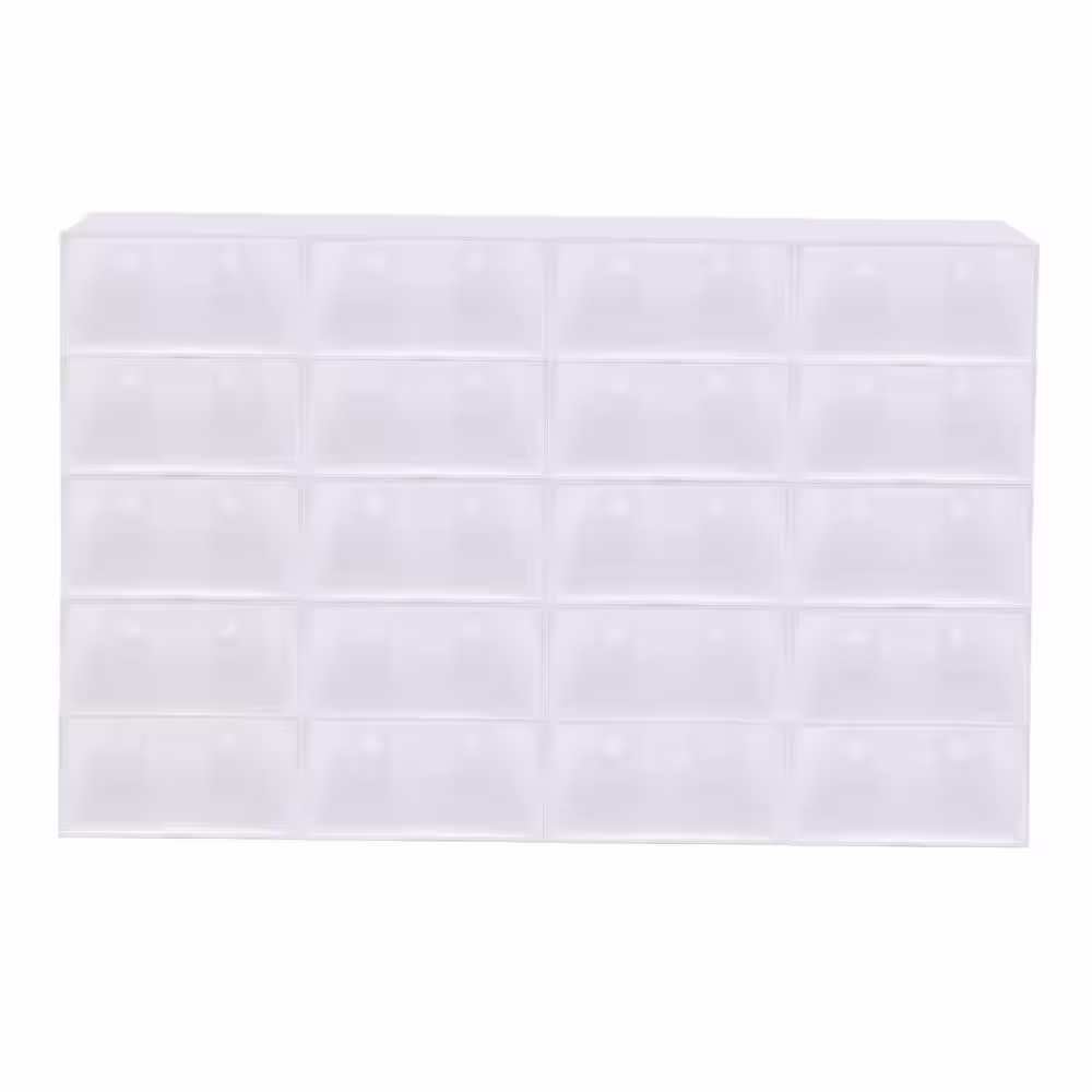 None 20-Pair Stackable White Plastic Shoe Boxes