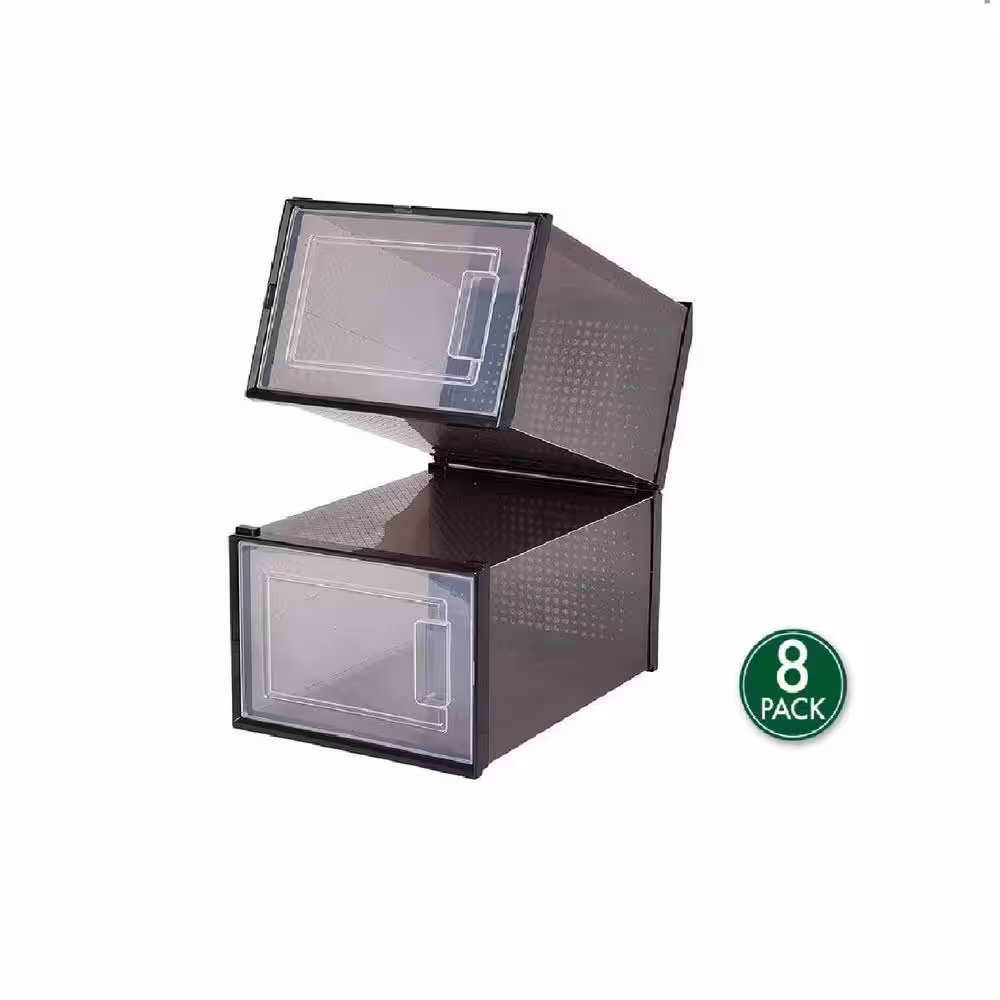 cadeninc 8-Pair Black Clear Stackable Plastic Shoe Boxes (13.7 in. L x 9.84 in. W x 7.36 in. H)