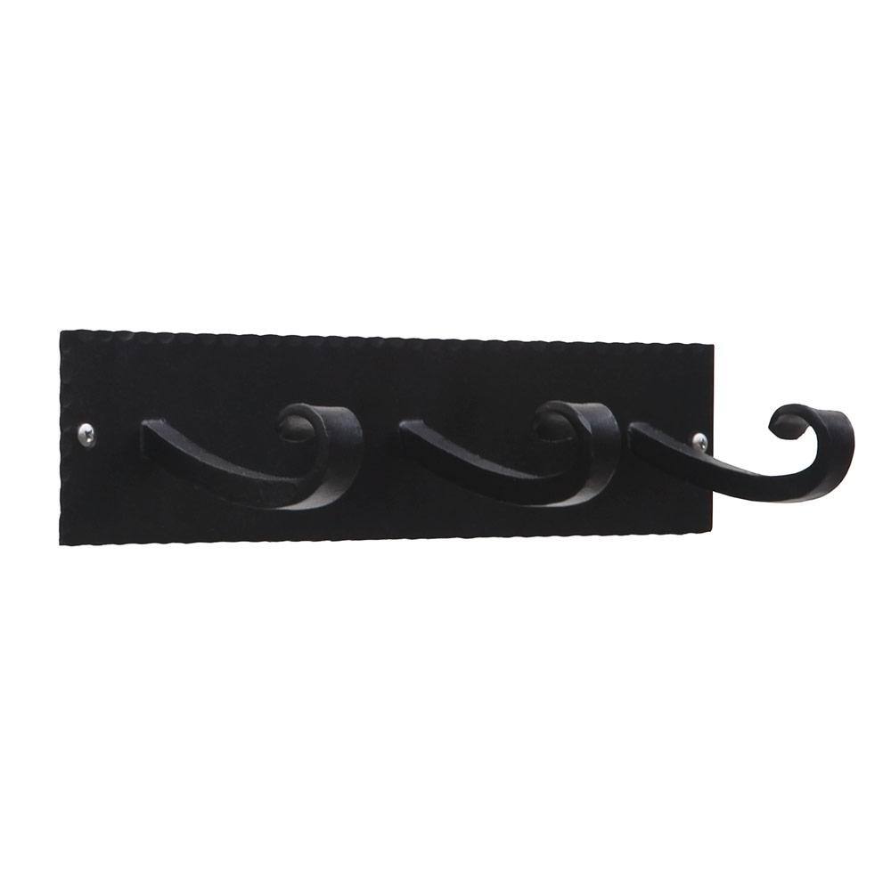 ACHLA DESIGNS 12.25 in. W x 4.25 in. H Black Powdercoat Finish LodgeTriple Hook Shelf Bracket with Multiple Hooks