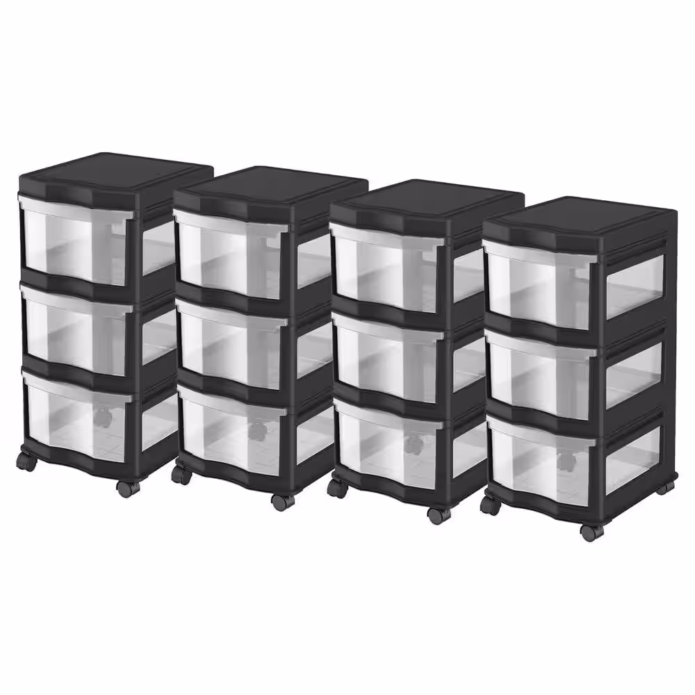 Life Story 13.2 in. H x 27.75 in. W x 15.5 in. D Classic 3 Shelf Storage Organizer Plastic Drawers Black (4-Pack)