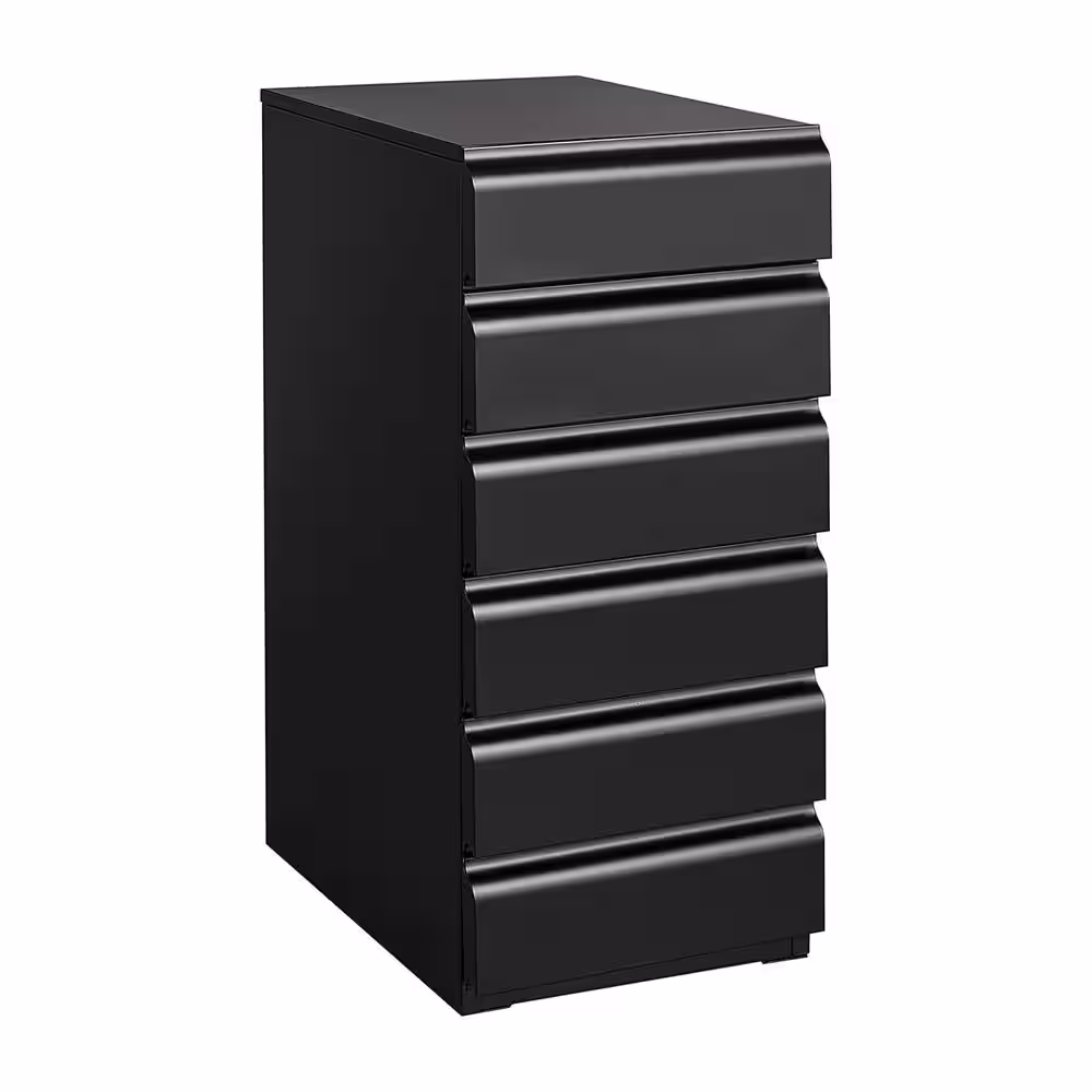 Mlezan 6 Drawer Metal Chest, 16.5"D x 11.8"W x 25.6"H Storage Cabinet in Black Under Desk Storage