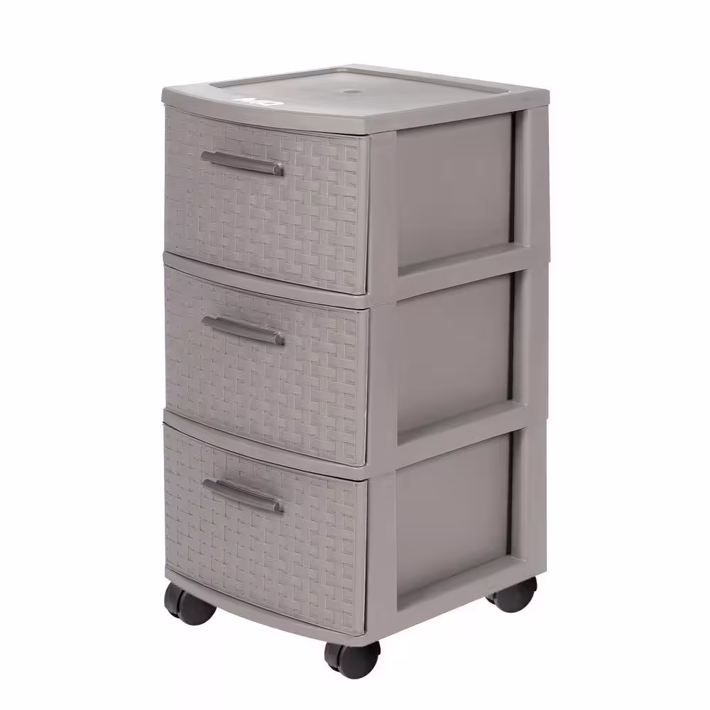 MQ 3-Drawer 26 in. H x 12.6 in. W Resin Rolling Cart in Taupe