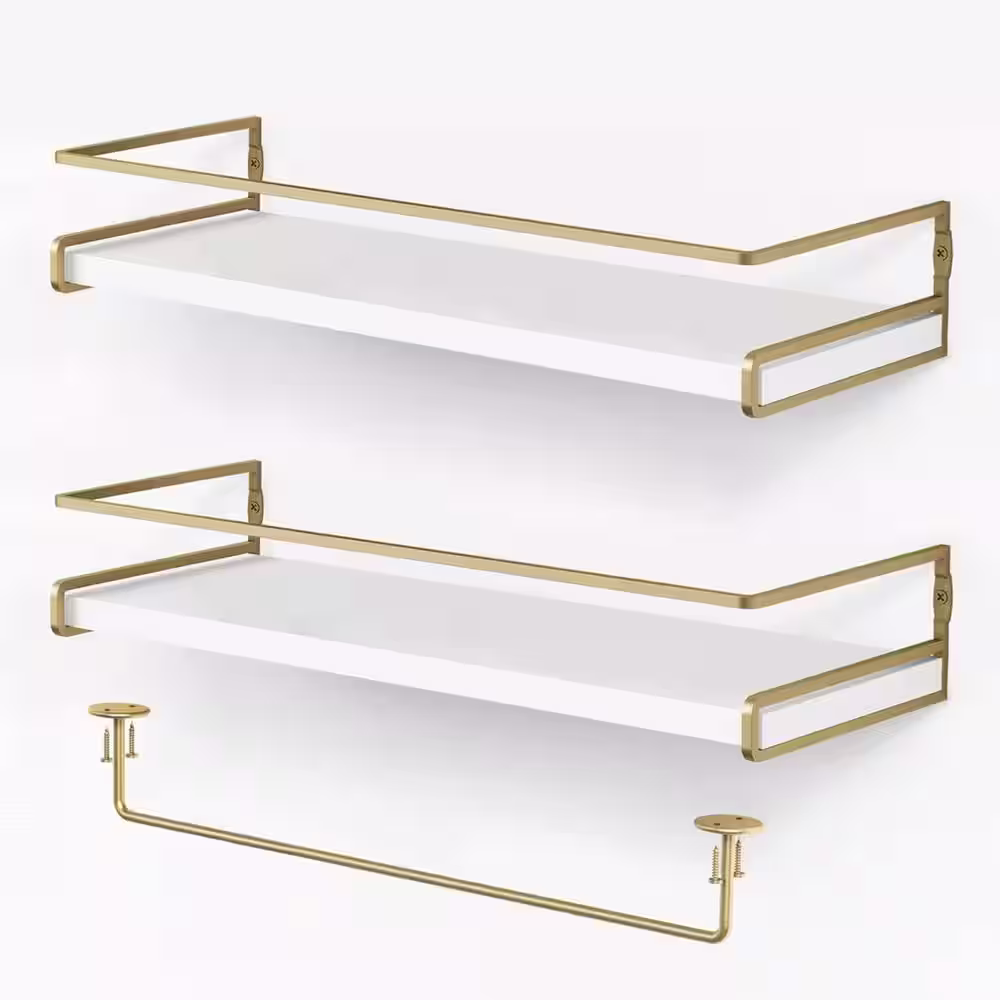 None 6 in. D x 15.7 in. W x 2.6 in. H White-GoldDecorative Wall Shelves with Bar (Set of 2)