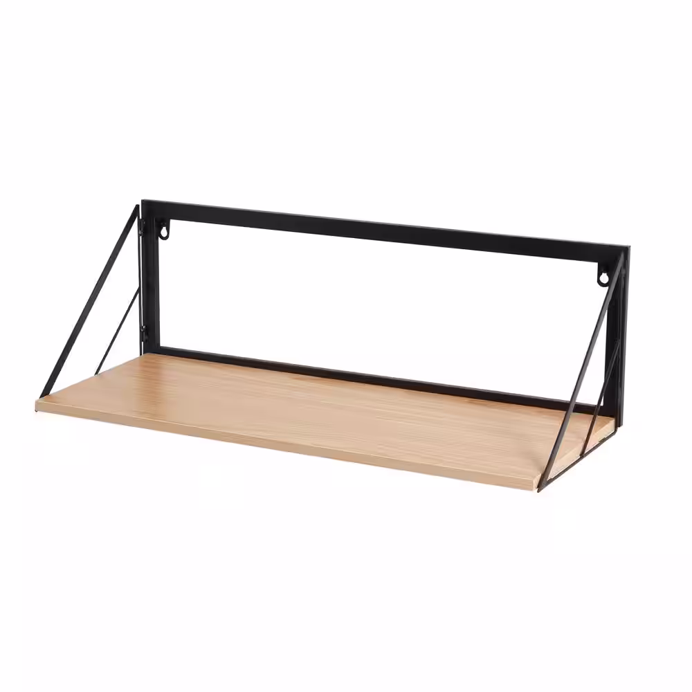 Honey-Can-Do 8 in. H x 24 in. W x 10 in. D Multi-Purpose Wall-Mounted Wood Shelf with Metal Bracket in Black/Natural