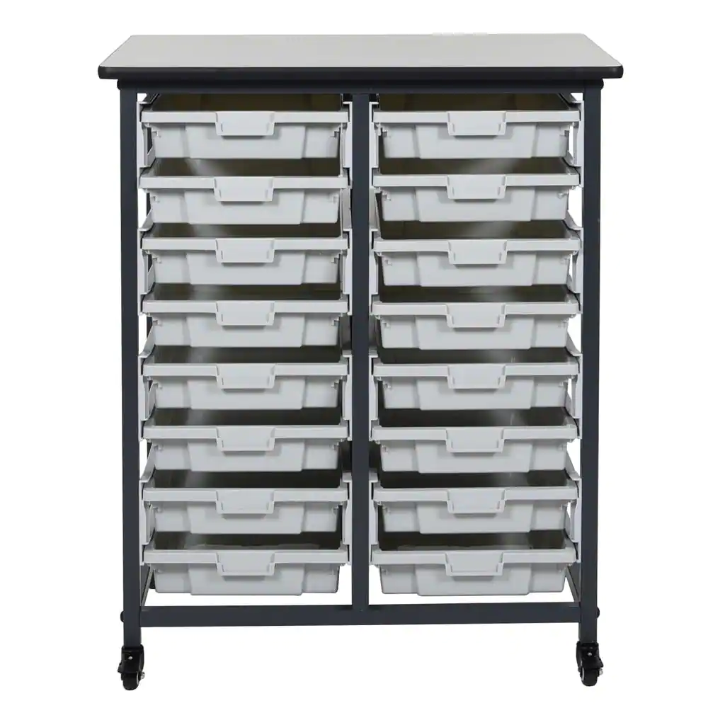 Luxor 37 in. x 30 in. Mobile Bin Storage Cart Double Row and Single Bin Plastic in Black Frame