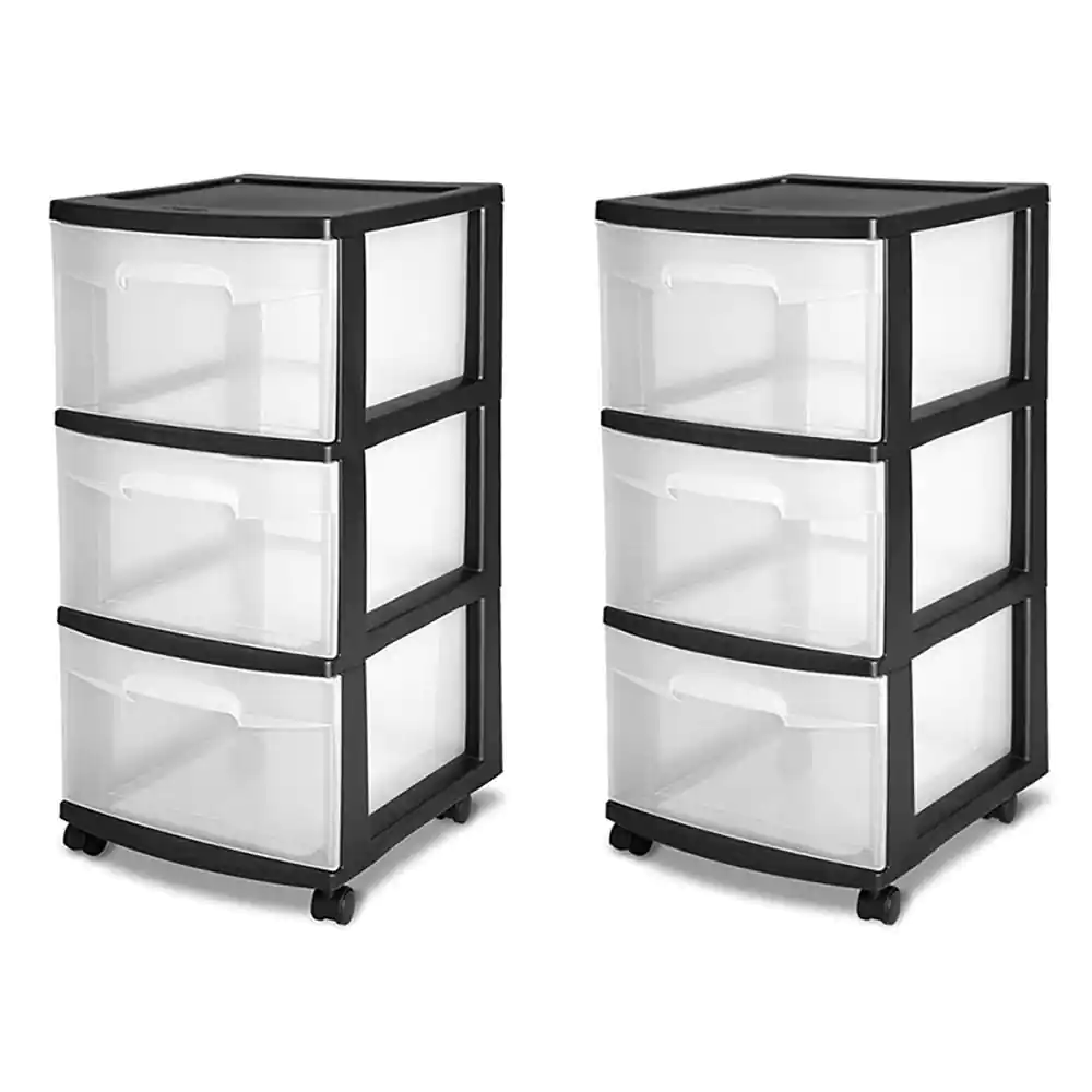 Sterilite 3-Drawer Storage Cart, Clear with Black Frame (2-Pack)