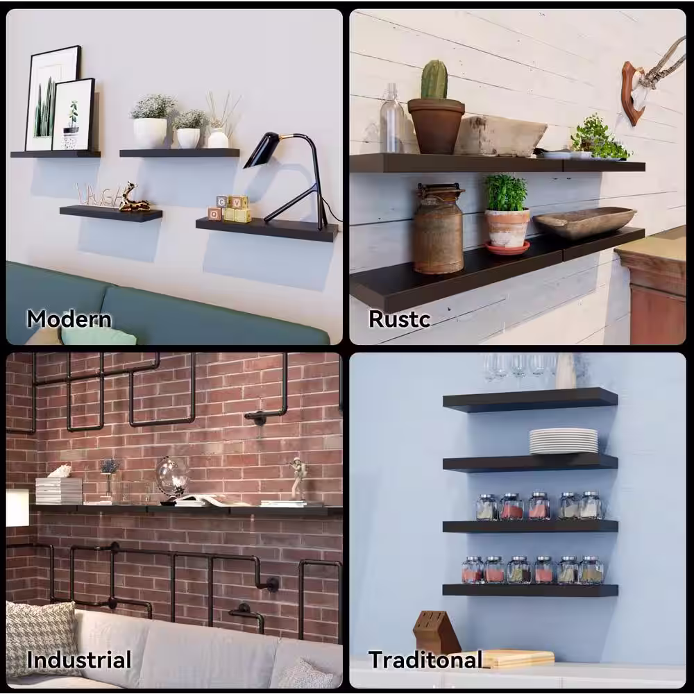 Cubilan 16.5"Lx5.7"Wx1.2"H Black Floating Shelves for Wall, 4 Sets