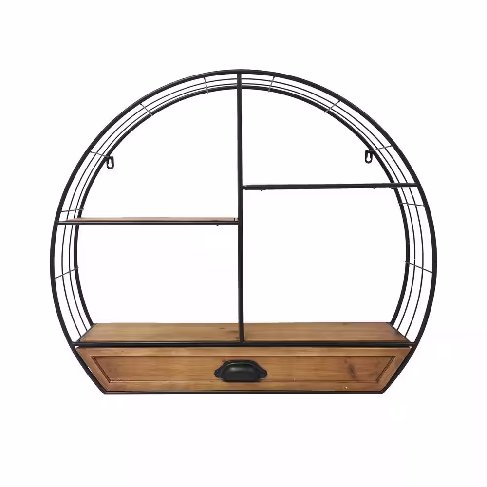 PETERSON ARTWARES Rustic Iron Wall Shelf with Drawer