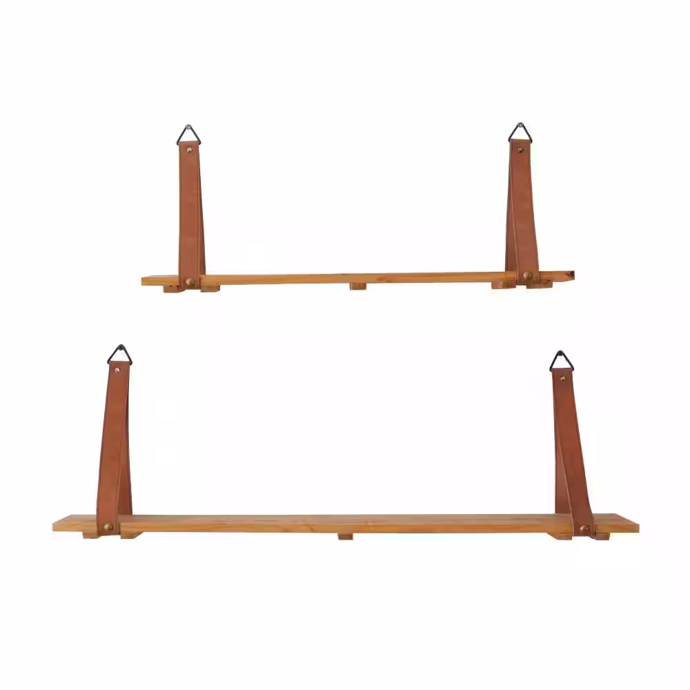 Litton Lane Brown 2 Shelves Wood Wall Shelf with Lip (Set of 2)