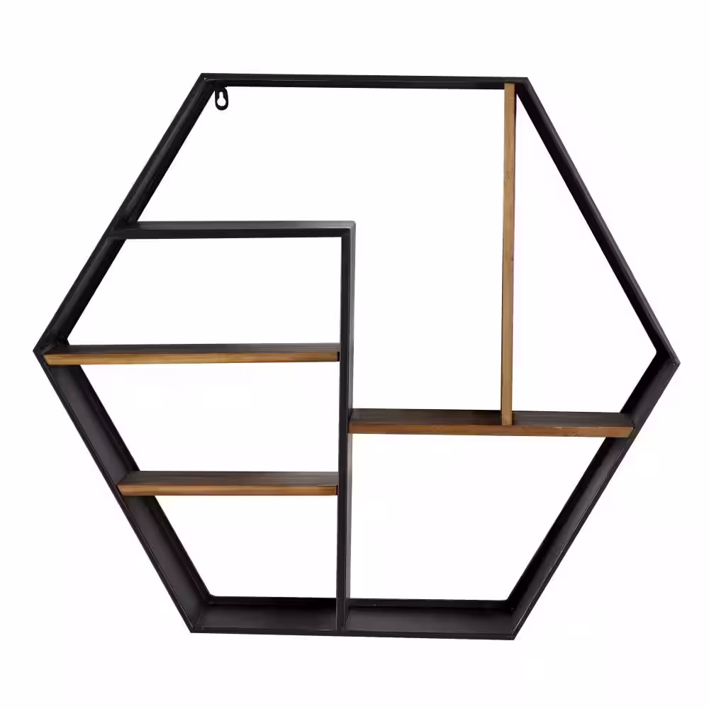 None 22 in. x 16 in. Brown Metal Industrial Wall Shelf