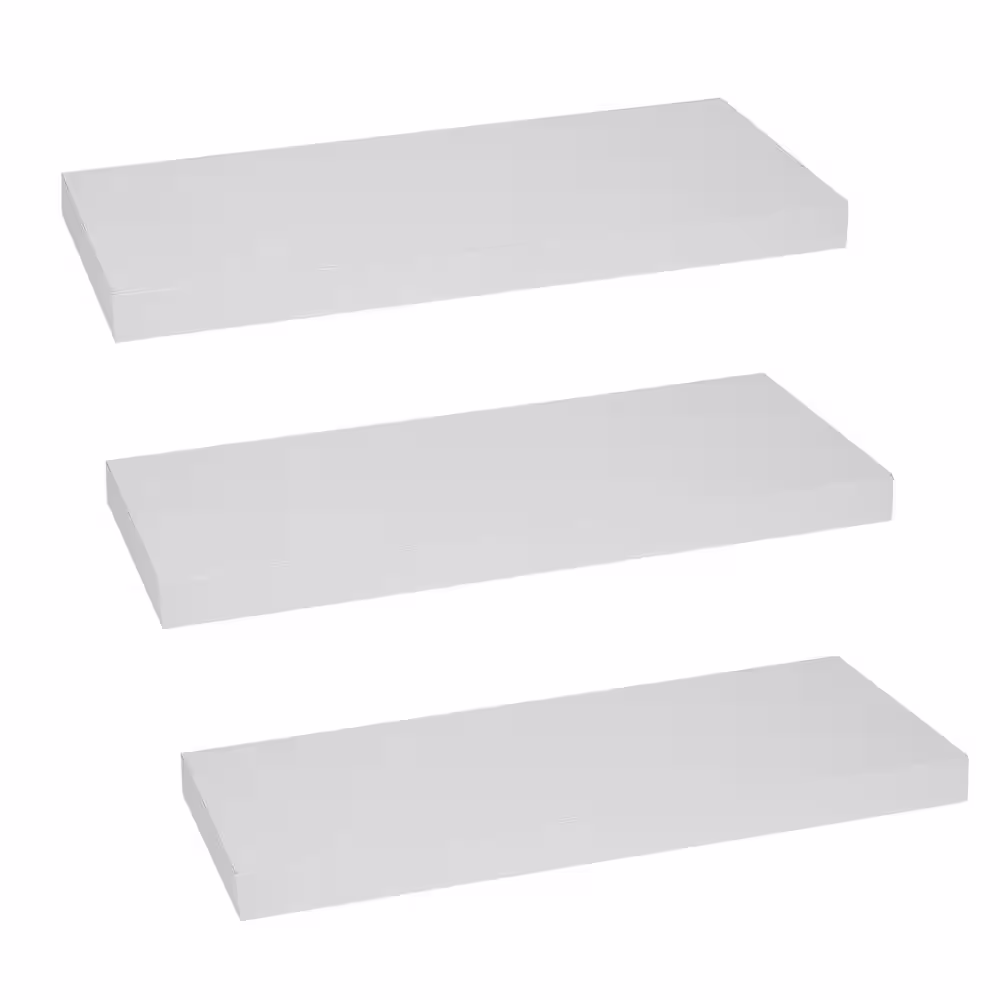 Mind Reader 14.95 in. x 6.6 in. x 1 in. White 3-Pack Of Floating Wall Shelves with Invisible Brackets