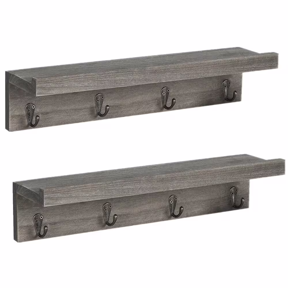 None Rustic Green Wood Coat Rack Wall Mount Shelf with 4-Dual Hooks Hooks (Set of 2)