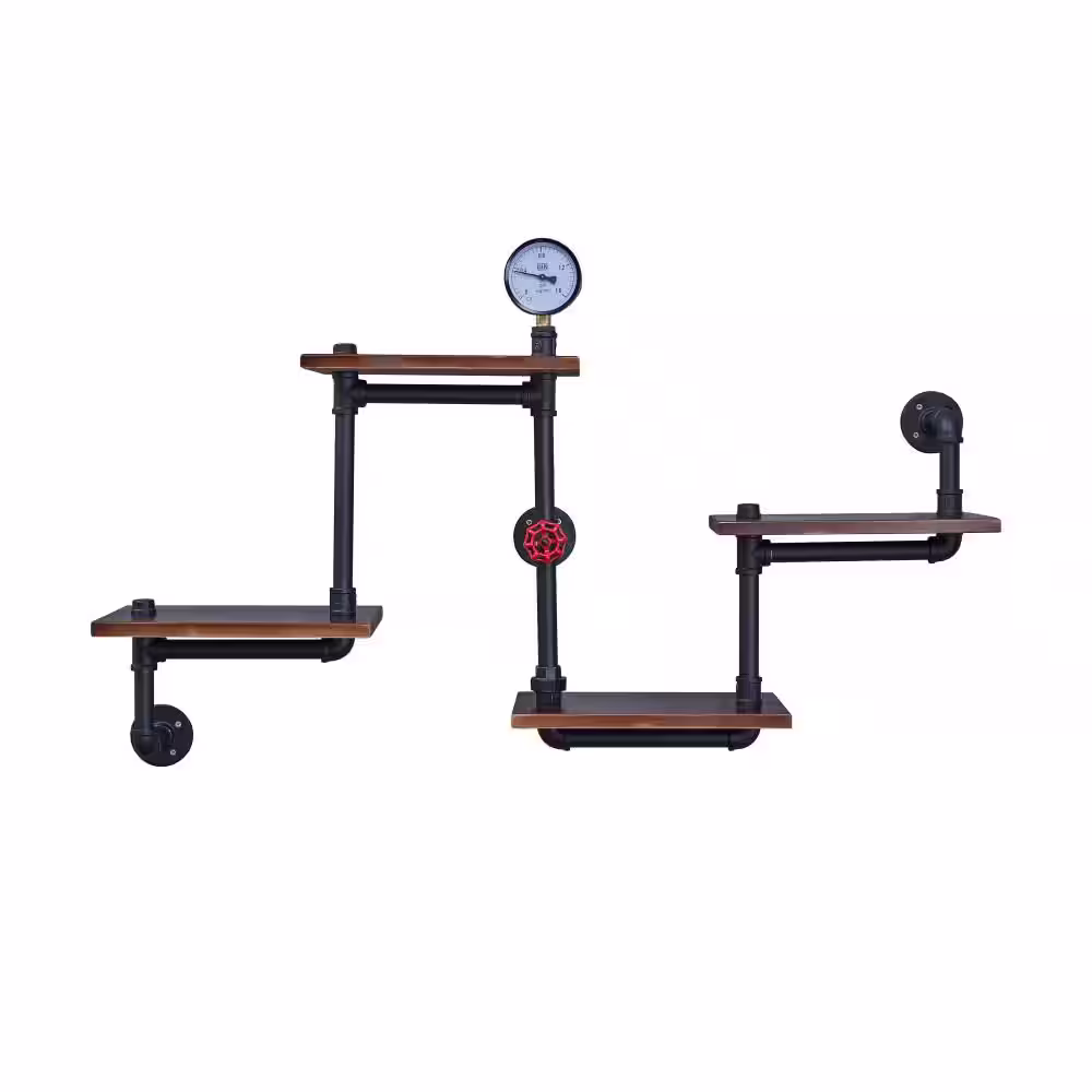 DANYA B 4-Shelf 44.5 in. x 8 in. Corner Or Straight Floating Industrial Pipe Wall Mount Shelving Unit