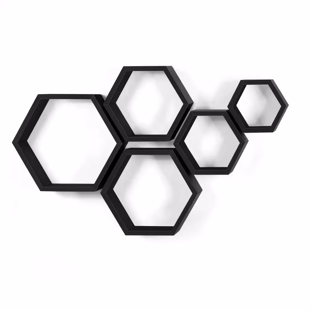 None Hexagon Floating Shelves 5 Different Sizes Honeycomb Shelves for Wall, Black