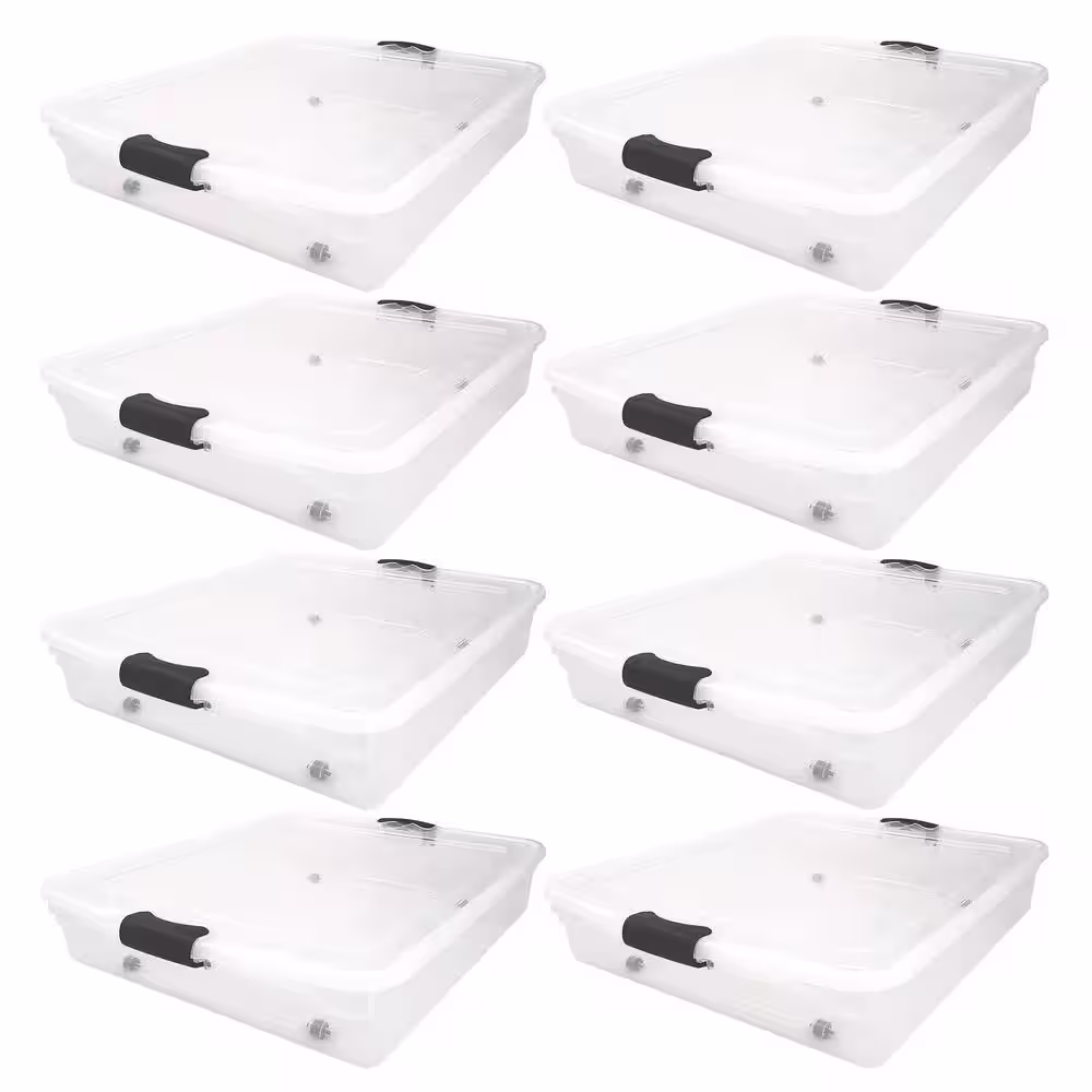 HOMZ 56 qt. Full/Queen Underbed Clear Plastic Latching Storage Container, 8-Pack