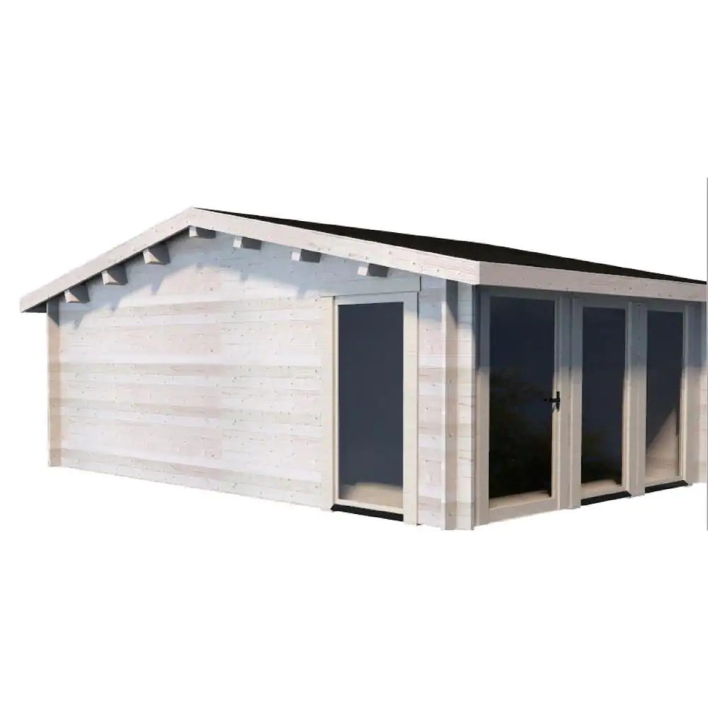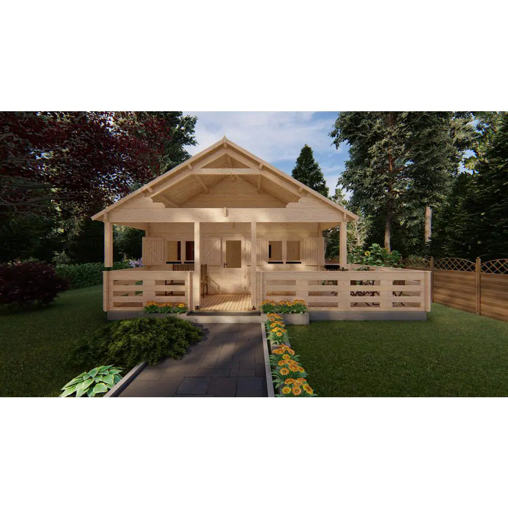 Hud-1 EZ Buildings Lama J44LT 26 ft. x 14 ft. with 26 ft. x 8 ft. Porch Includes Solar Power Log Cabin Kit