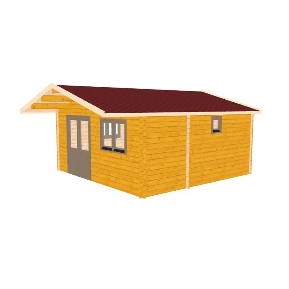 Hud-1 EZ Buildings 19 ft. 5 in. x 19 ft. 5 in. Multi Room Log Building Kit with Porch
