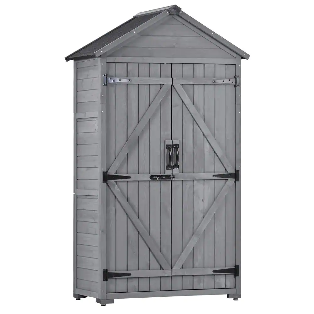 None 5.8 ft. W x 3 ft. D Wood Shed with Waterproof Asphalt Roof, Lockable Doors, (3-Tier) Shelves, Gray (17.4 sq. ft.)