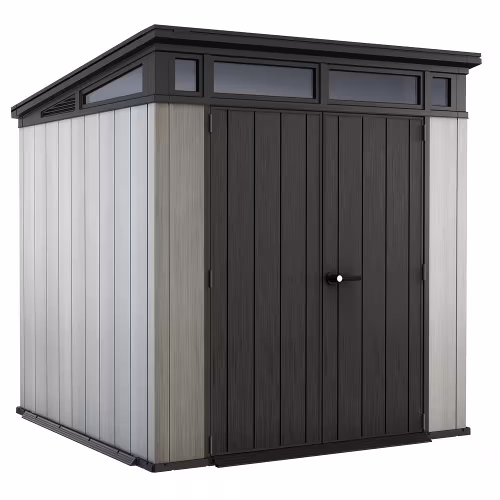 Keter Artisan 7 ft. W x 7 ft. D Large Modern Durable Resin Plastic Storage Shed with Double Doors, Grey (50.2 sq. ft.)