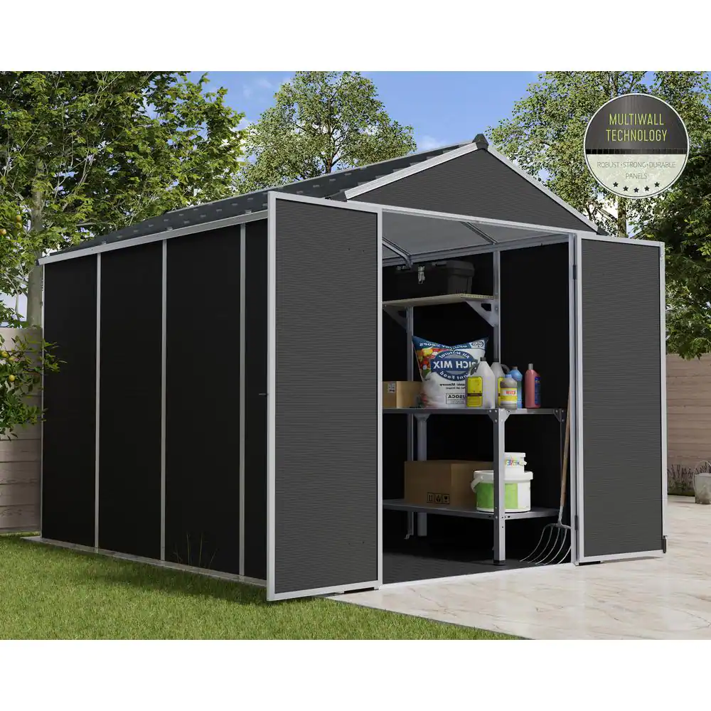 CANOPIA by PALRAM Rubicon 6 ft. W x 10 ft. D Dark Gray Plastic Garden Storage Shed (60.5 sq. ft.)