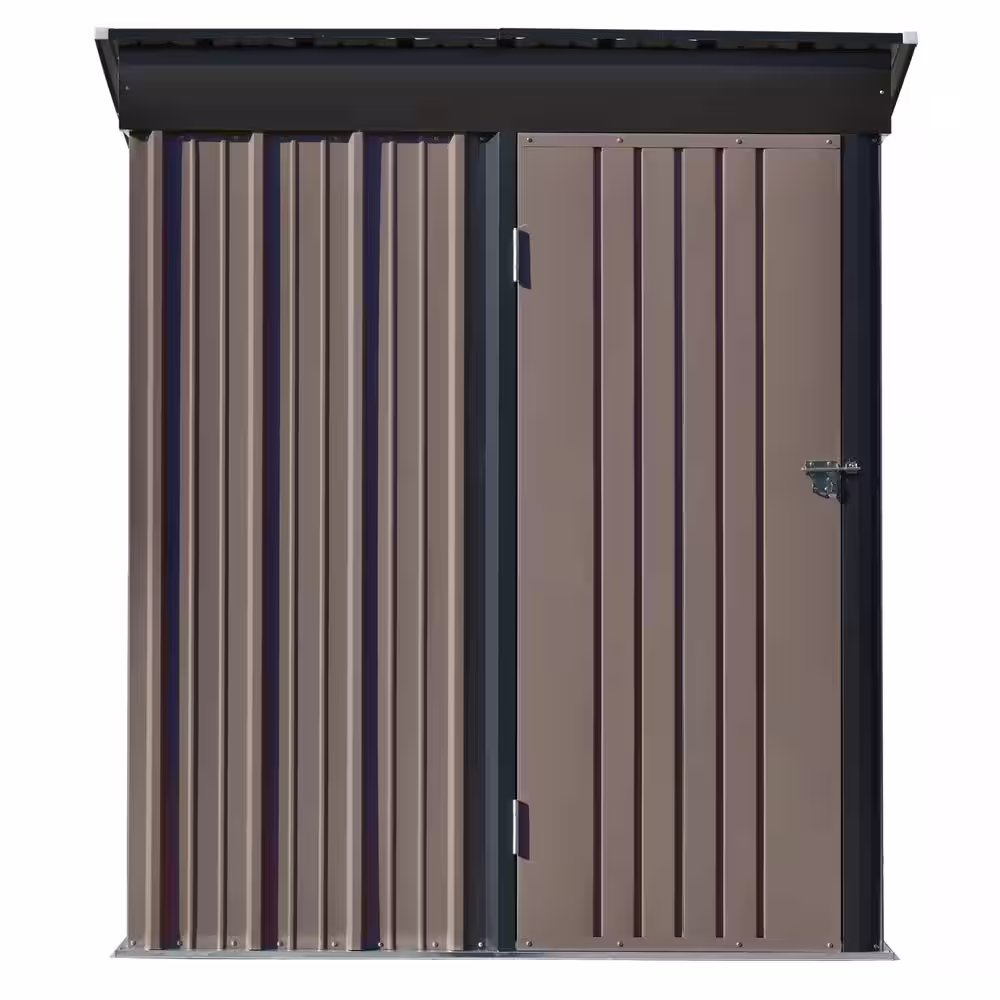 None 34 in. W x 63 in. D Garden Shed, Patio Metal Lean-to Storage Shed with Lockable Door In Brown 14.4 sq. ft.